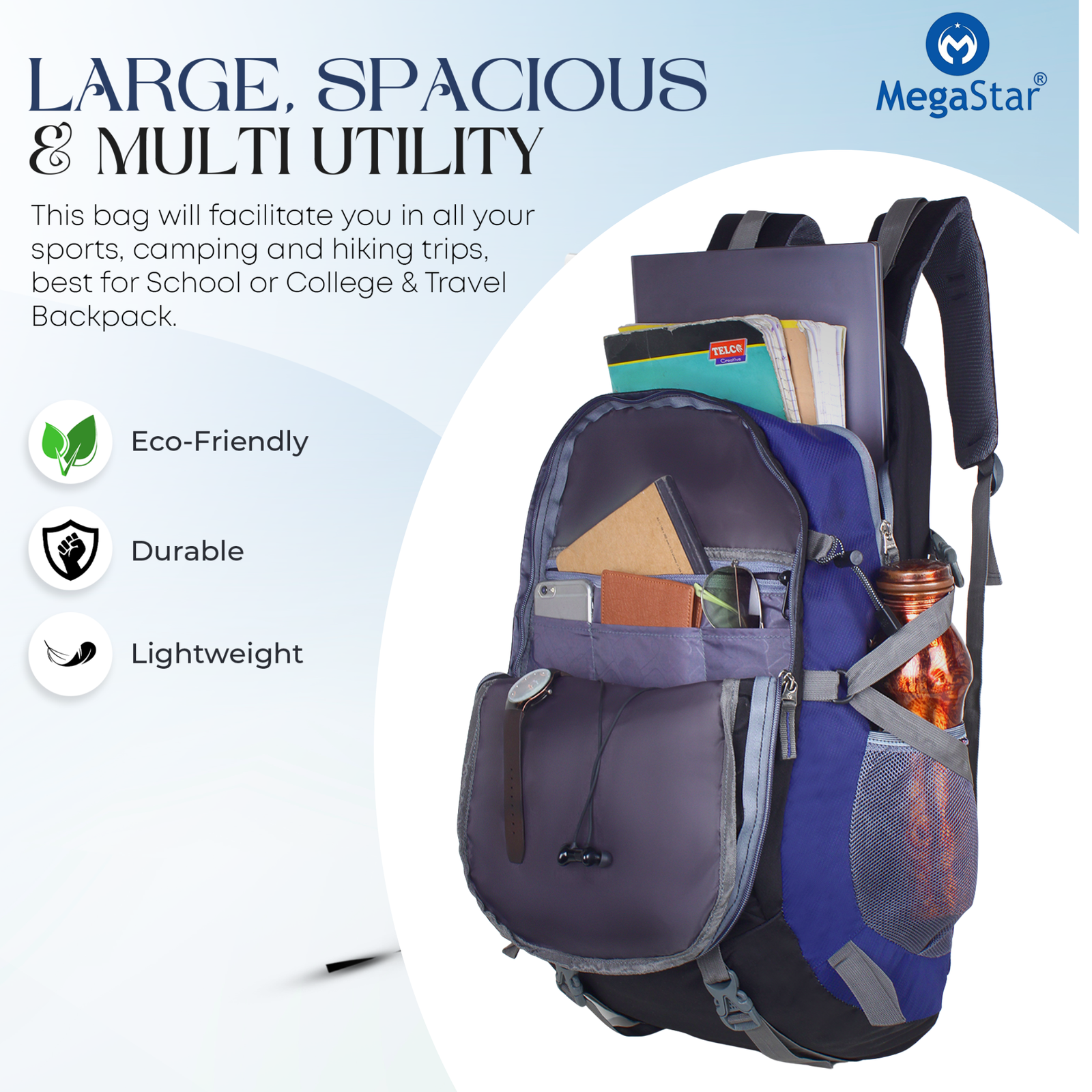 This backpack is crafted from strong polyester material, making it a reliable choice for travellers, trekkers, and campers.