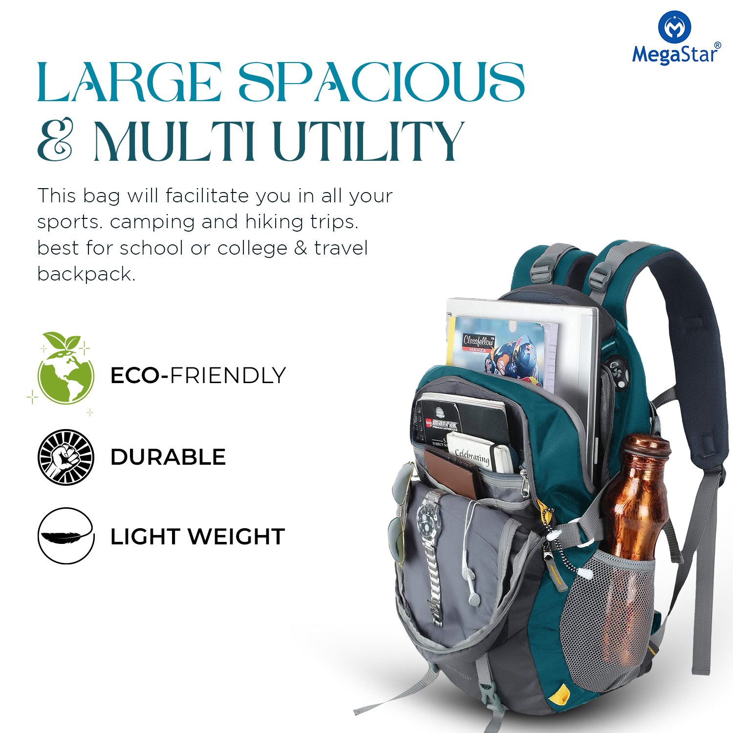 This backpack is engineered for maximum storage and convenience. The large main compartment easily accommodates clothes, gear, laptops, or outdoor essentials, while multiple front and side pockets keep smaller items neatly arranged and within reach. Two mesh bottle holders on the sides provide quick access to hydration, and extra zippers with secure pulls ensure that your valuables stay safe. Whether you’re packing for travel, hiking, college, or office use, the MegaStar Adventure Backpack gives you the freedom to carry more without feeling cluttered.