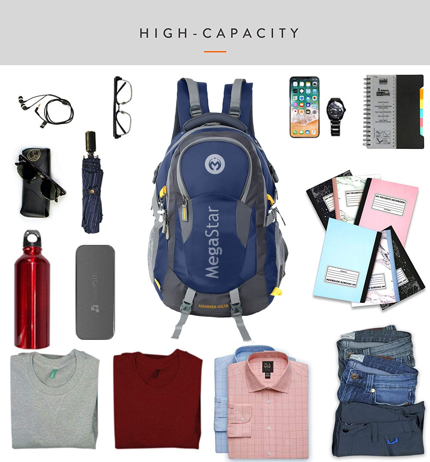 More than just a storage solution, the MegaStar Adventure Backpack is a statement of style and functionality. Its sleek contours and sporty yet refined look make it suitable for all occasions. Ideal for students, professionals, travellers, hikers, and campers alike, it seamlessly transitions from outdoor adventures to everyday urban use. Whether you’re embarking on a trek, commuting to work, or heading out for a weekend getaway, this 55L backpack keeps your belongings secure, organized, and accessible—making your journey more comfortable and your style more impressive.