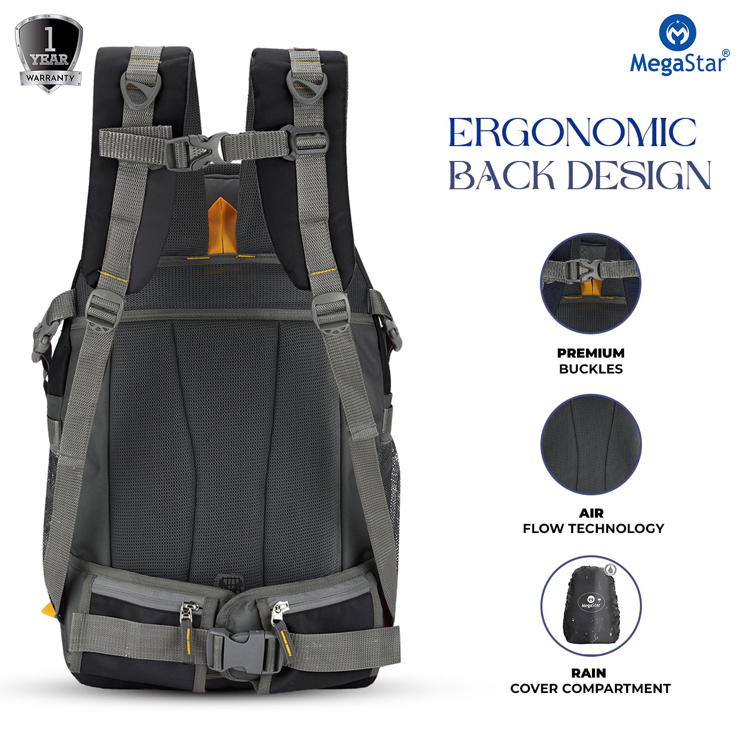 More than just a storage solution, the MegaStar Adventure Backpack is a statement of style and functionality. Its sleek contours and sporty yet refined look make it suitable for all occasions. Ideal for students, professionals, travellers, hikers, and campers alike, it seamlessly transitions from outdoor adventures to everyday urban use. Whether you’re embarking on a trek, commuting to work, or heading out for a weekend getaway, this 55L backpack keeps your belongings secure, organized, and accessible—making your journey more comfortable and your style more impressive.